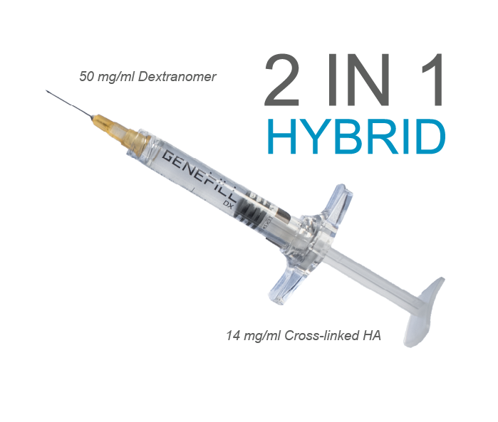 Genefill DX, the only dermal filler with Dextranomer biostimulator.